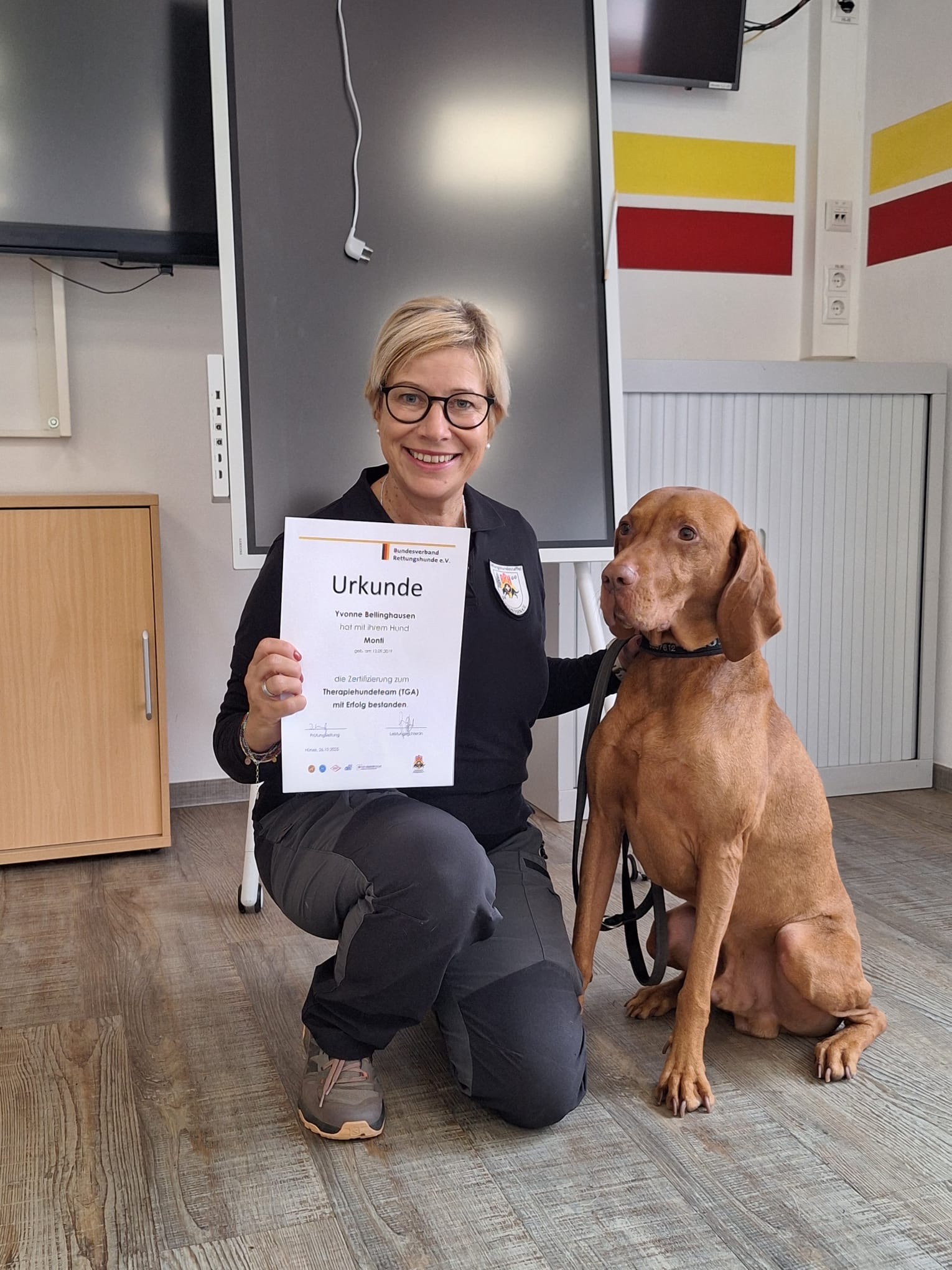 Die Arbeit mit dem Hund verbindet für mich Teamgeist, Verantwortung und das Ziel, gemeinsam zu helfen. Ich bin unglaublich stolz auf Monti, der die Prüfungen mit seiner gewohnt charmanten Art gemeistert hat.